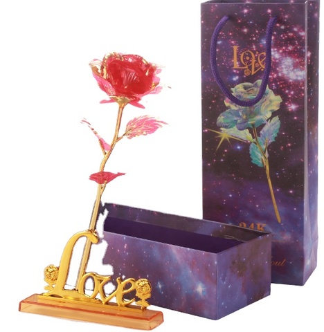 Regalo del Día de la madre Venta al por mayor tallo largo Decoración de la boda flor artificial Regalo del día de San Valentín Rosa 24K lámina de oro jabón rosa